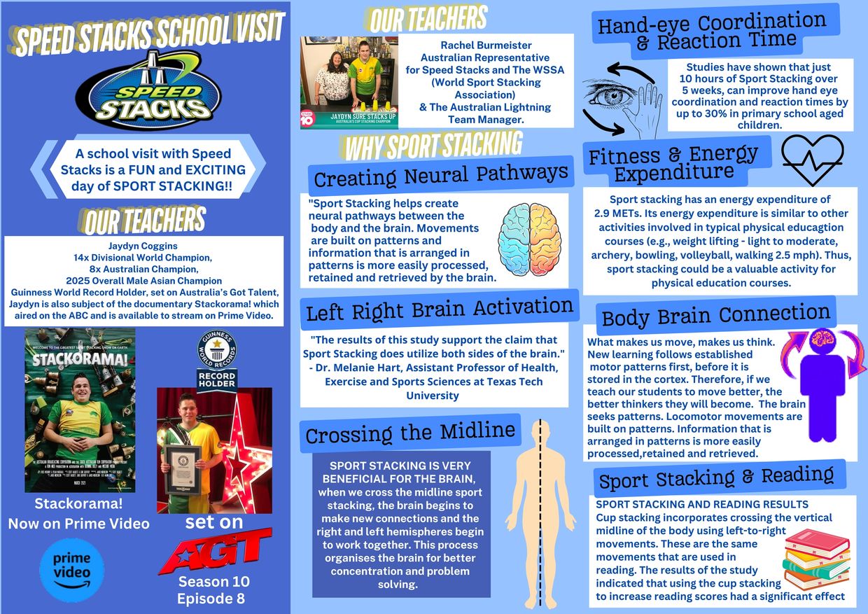 Inspire your students with an unforgettable visit from Jaydyn Coggins — 14-time Divisional World Champion, 8-time Australian Champion, and reigning 2025 Overall Male Asian Champion in sport stacking!